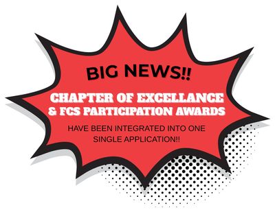 The original separate forms for 100%, 75%, & 50% FCS Participation Awards & Chapter of Excellence Award have now been integrated into this single application.